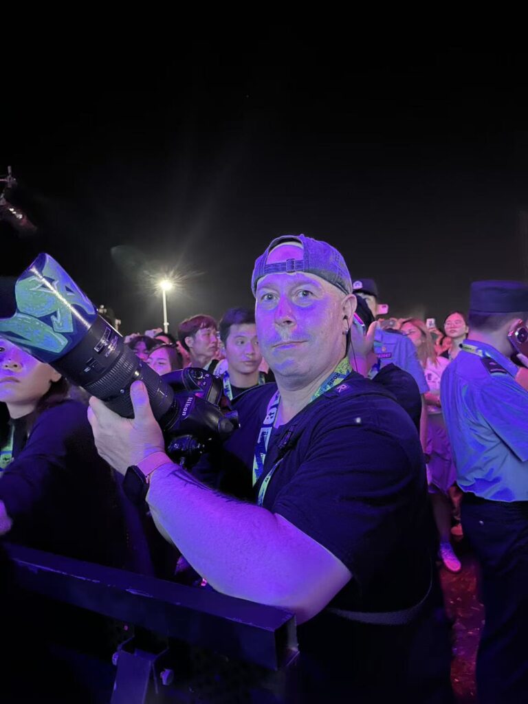The real challenge shooting pop in China? The female fans—especially the young ones. They’re intensely passionate and can turn aggressive if you block their view of their idol. Over the years, I’ve dodged plenty of slaps, punches, and swinging selfie sticks. I’m far from the only photographer who’s dealt with this; even police and security guards take hits. There’s little recourse—no one’s about to escalate with a petite 5’4″, 80-pound fan. So the options boil down to absorbing it or stepping aside quickly to avoid worse.